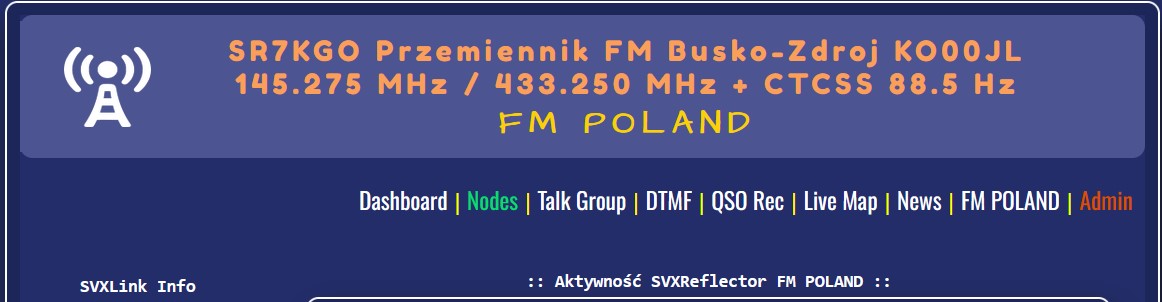 Pragniemy poinformować, iż nasze przemienniki crossbandowe SR7KGO oraz SR7ABZ są zalogowane do ogólnopolskiego systemu skupiającego użytkowników indywidualnych, nody, hotspoty prywatne, publiczne oraz przemienniki FM POLAND.