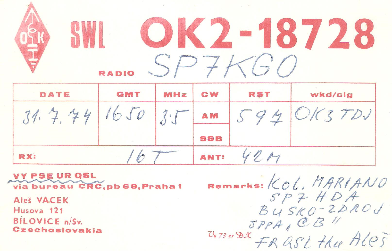 Ciekawostką w logu są wpisy QSO z dawnych lat informujące o czasie, paśmie i rodzaju modulacji jaką łączności zostały przeprowadzone. Lata 70-te to czasy dla krótkofalowców nieobfitujące w dostęp do sprzętu fabrycznego. W obiegu były urządzenia najczęściej wojskowe z demobilu, przestarzałe, przerabiane i przystosowywane do prowadzenia łączności w pasmach dostępnych dla radioamatorów. Stąd też pewnie w rubryce MODE informacja „AM” oznaczająca modulację amplitudy sygnału uznaną za mało efektywną, energochłonną i w dzisiejszych czasach nie używana przez krótkofalowców.