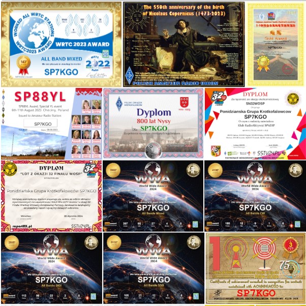 Dokładamy wszelkich starań aby głos stacji SP7KGO był słyszany na falach eteru na wszystkich długościach i szerokościach geograficznych wszystkimi emisjami zaczynając o najstarszych jak telegrafia CW poprzez emisje foniczne AM, SSB, FM oraz cyfrowe RTTY, SSTV, FT8 itp. zarówno na pasmach KF jak i UKF czy VHF.