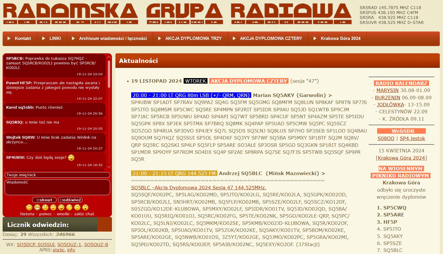 Każdy wtorek 21:20 – 21:45 LT QRG 144.310 USB„AKCJA DYPLOMOWA SZEŚĆ”